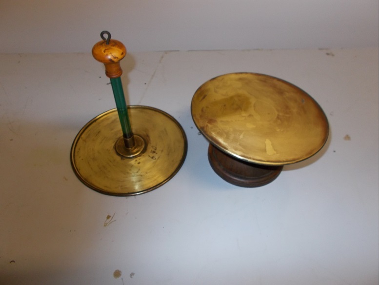 Con questo strumento, Volta studia sia “l’elettrificazione naturale”, indotta dall’atmosfera che quella “artificiale”, prodotta da un corpo carico elettricamente, per esempio una bottiglia di Leida. L’apparecchio è composto da due dischi di ottone, delle stesse dimensioni, sovrapponibili. Apparecchi di questo tipo furono usati nella seconda metà del XVIII secolo anche da altri studiosi di elettricità ma Volta afferma di averlo inventato come derivazione del suo elettroforo. Sperimentalmente osserva che la presenza di un secondo disco permette al primo, in contatto con un conduttore carico elettricamente, di assumere una maggiore carica elettrica rispetto a quando viene elettrizzato da solo. Questa proprietà è ciò che viene chiamato “condensazione o accumulo di elettricità”. In questo strumento, il disco superiore, che Volta chiama scudo come nell’ elettroforo, è dotato di un manico di vetro verde (isolante) che termina con un pomello di legno e un anello di metallo. Quello inferiore, chiamato piatto, ha un piedistallo di legno unito al disco tramite un cilindretto di vetro verde. In un fascicolo del registro inventariale del Gabinetto di Fisica (individuato dalla lettera B), al n.670 è riportata questa descrizione dello strumento: Condensatori a piano di cristallo. Questo induce a pensare che lo strumento fosse dotato anche di un piano di cristallo (o vetro) con funzione di dielettrico. Volta, nella memoria letta alla Royal Society il 14 marzo 1782 [1], illustrando con dettaglio le modalità di alcuni esperimenti da lui effettuati, descrive un piatto inferiore con una incrostatura di resina sottile, liscia, elettricamente scarica nella sua parte superiore con funzione di isolante o, meglio, di cattivo conduttore che forma, quando lo scudo è appoggiato al piatto inferiore, proprio un condensatore a piatti piani paralleli separati da un dielettrico.